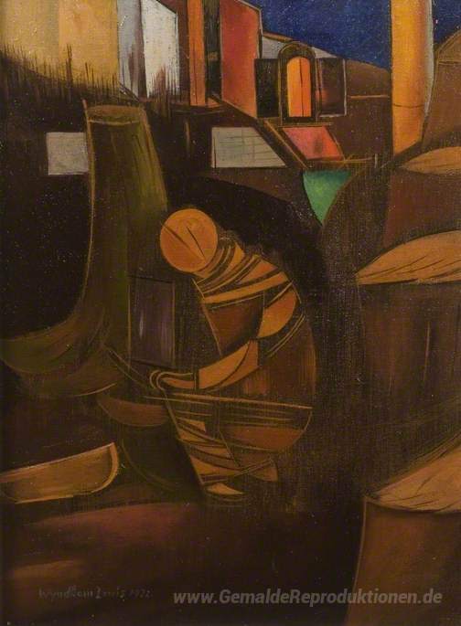 Wir bieten Ihnen eine handgefertigte Reproduktion auf Leinwand des berühmten Kunstwerks 'Zusammenfassung' von Wyndham Lewis, aus dem Reproduktionsmuseum.