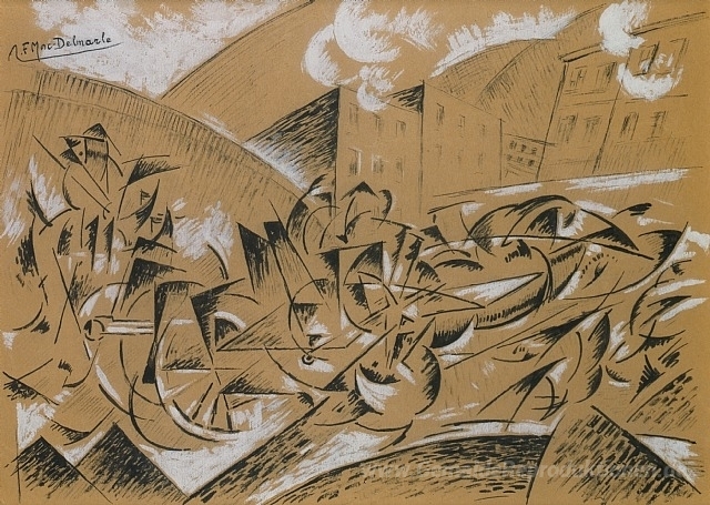 Wir bieten Ihnen eine handgefertigte Reproduktion auf Leinwand des berühmten Kunstwerks 'Zusammensetzung Futuriste' von Félix Del Marle, aus dem Reproduktionsmuseum.