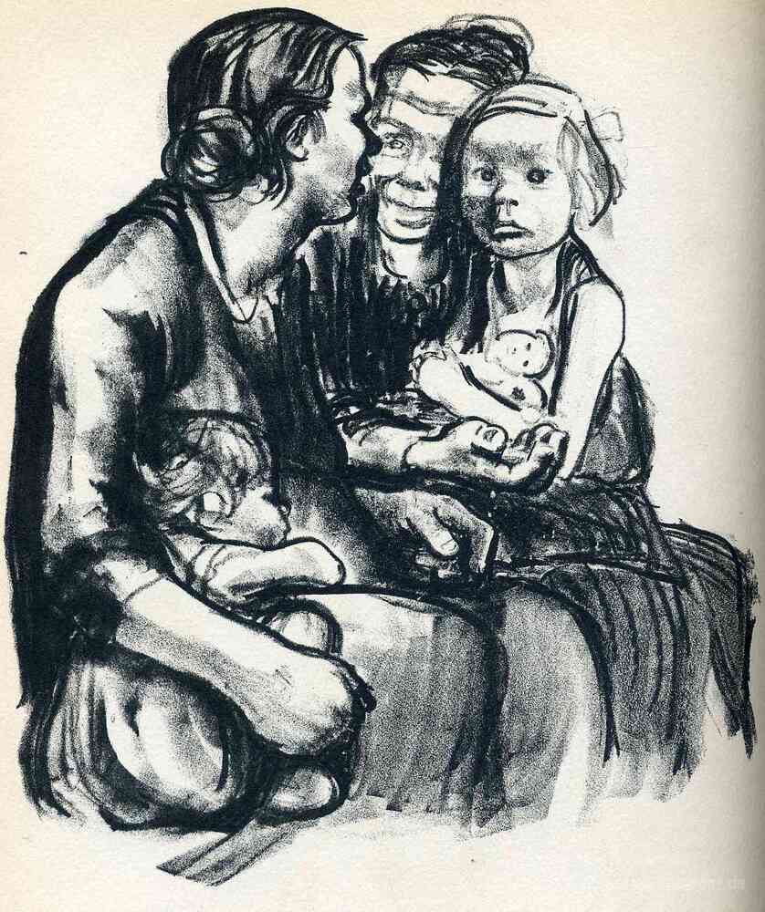 Wir bieten Ihnen eine handgefertigte Reproduktion auf Leinwand des berühmten Kunstwerks 'Zwei Chatten Frauen mit zwei Kindern' von Kathe Kollwitz, aus dem Reproduktionsmuseum.
