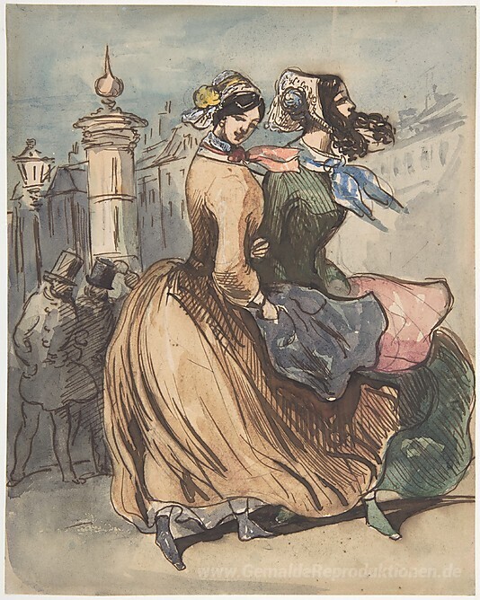 Wir bieten Ihnen eine handgefertigte Reproduktion auf Leinwand des berühmten Kunstwerks 'Zwei Grisetten' von Constantin Guys, aus dem Reproduktionsmuseum.