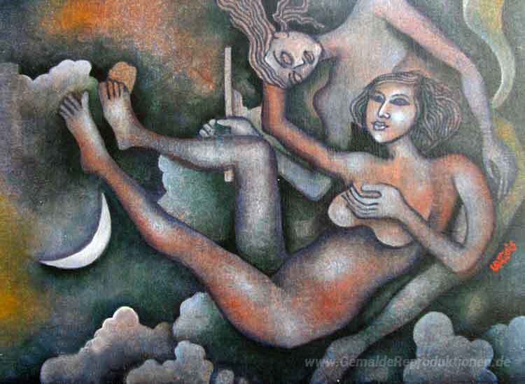 Wir bieten Ihnen eine handgefertigte Reproduktion auf Leinwand des berühmten Kunstwerks 'Zwei Liebhaber' von Jahar Dasgupta, aus dem Reproduktionsmuseum.