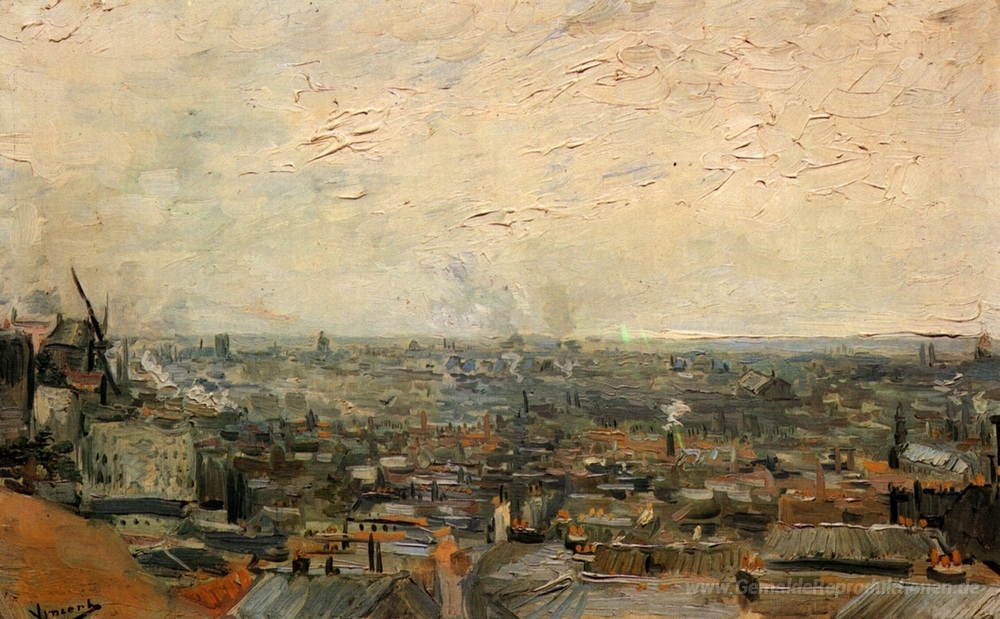 Wir bieten Ihnen eine handgefertigte Reproduktion auf Leinwand des berühmten Kunstwerks 'Ansicht von Paris vom Montmartre' von Vincent van Gogh, aus dem Reproduktionsmuseum.