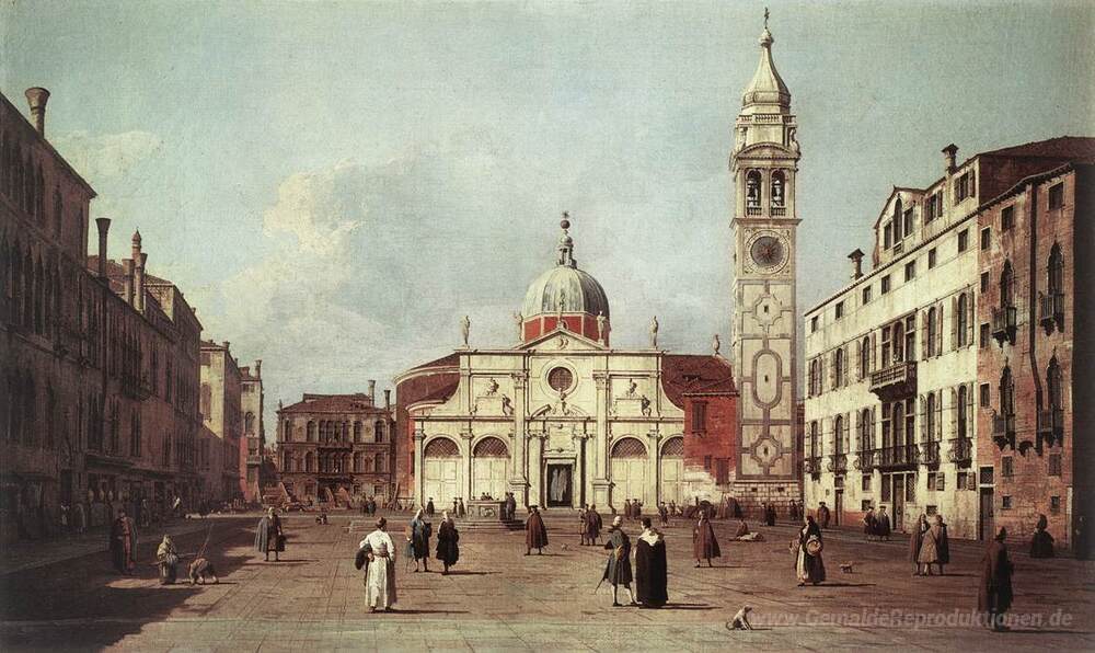 Wir bieten Ihnen eine handgefertigte Reproduktion auf Leinwand des berühmten Kunstwerks 'Campo Santa Maria Formosa' von Canaletto, aus dem Reproduktionsmuseum.