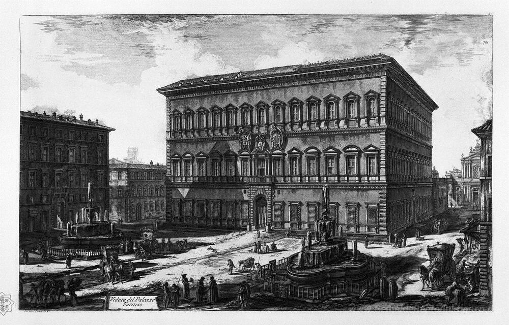 Wir bieten Ihnen eine handgefertigte Reproduktion auf Leinwand des berühmten Kunstwerks 'Das Schloss der Acqua Paola auf der Golden Mount' von Giovanni Battista Piranesi, aus dem Reproduktionsmuseum.