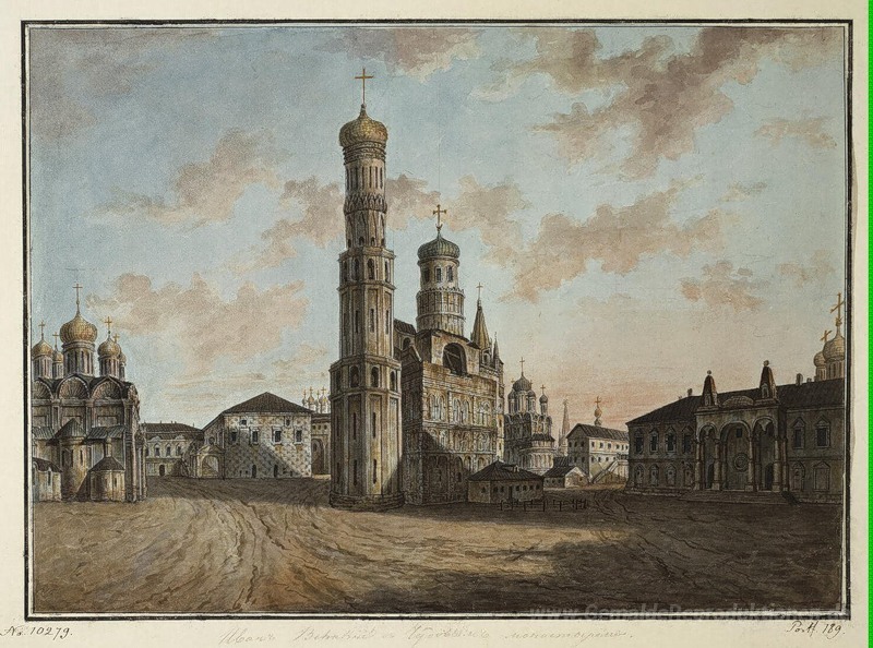Wir bieten Ihnen eine handgefertigte Reproduktion auf Leinwand des berühmten Kunstwerks 'Iwan der Große Glockenturm und Chudov Kloster im Kreml' von Fyodor Alekseyev, aus dem Reproduktionsmuseum.