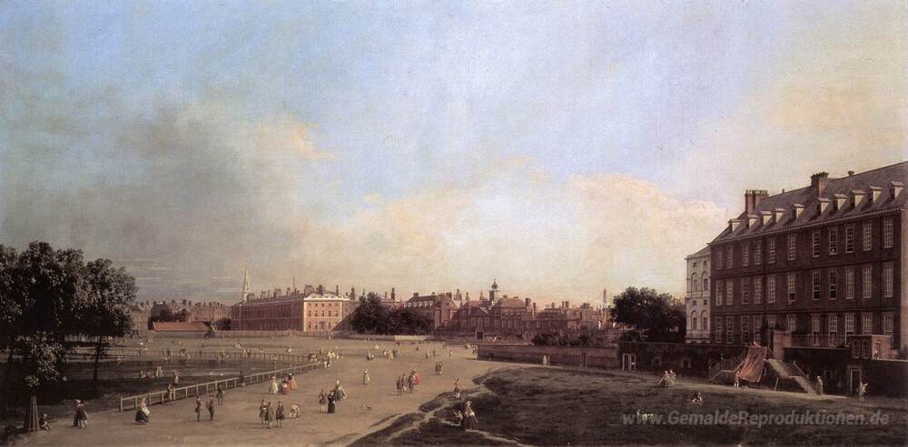 Wir bieten Ihnen eine handgefertigte Reproduktion auf Leinwand des berühmten Kunstwerks 'London: The Old Horse Guards vom St. James Park' von Canaletto, aus dem Reproduktionsmuseum.