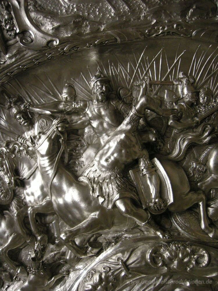 Wir bieten Ihnen eine handgefertigte Reproduktion auf Leinwand des berühmten Kunstwerks 'Schüssel mit Szenen aus dem Leben der Kleopatra' von Bernardo Strozzi, aus dem Reproduktionsmuseum.