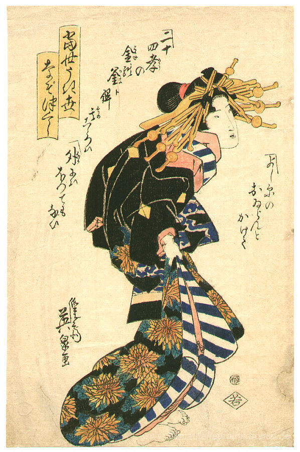 Wir bieten Ihnen eine handgefertigte Reproduktion auf Leinwand des berühmten Kunstwerks 'Kurtisane und Riddle' von Keisai Eisen, aus dem Reproduktionsmuseum.