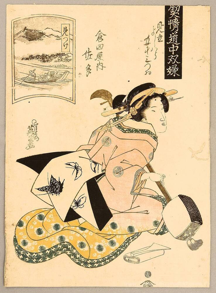 Wir bieten Ihnen eine handgefertigte Reproduktion auf Leinwand des berühmten Kunstwerks 'Schönheit und Shamisen' von Keisai Eisen, aus dem Reproduktionsmuseum.
