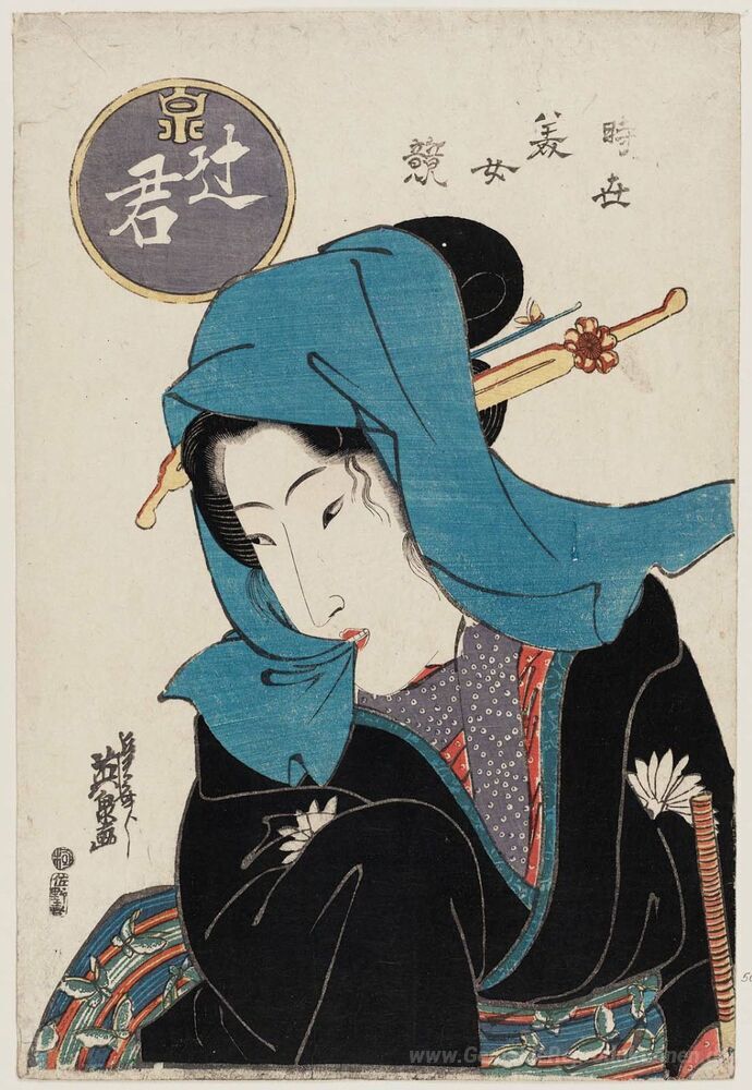 Wir bieten Ihnen eine handgefertigte Reproduktion auf Leinwand des berühmten Kunstwerks 'Streetwalker (Tsujigimi)' von Keisai Eisen, aus dem Reproduktionsmuseum.