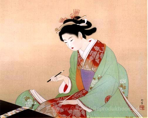 Wir bieten Ihnen eine handgefertigte Reproduktion auf Leinwand des berühmten Kunstwerks 'Unbekannter Titel (Bijinga)' von Uemura Shoen, aus dem Reproduktionsmuseum.