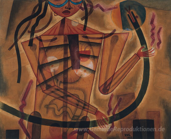 Wir bieten Ihnen eine handgefertigte Reproduktion auf Leinwand des berühmten Kunstwerks 'Ña diafana' von Xul Solar, aus dem Reproduktionsmuseum.