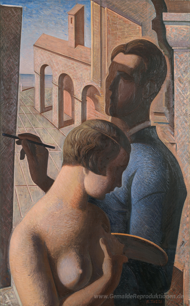 Wir bieten Ihnen eine handgefertigte Reproduktion auf Leinwand des berühmten Kunstwerks 'Abbildung ed Architetture' von Mario Tozzi, aus dem Reproduktionsmuseum.