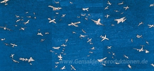 Wir bieten Ihnen eine handgefertigte Reproduktion auf Leinwand des berühmten Kunstwerks 'Aerei' von Alighiero Boetti, aus dem Reproduktionsmuseum.