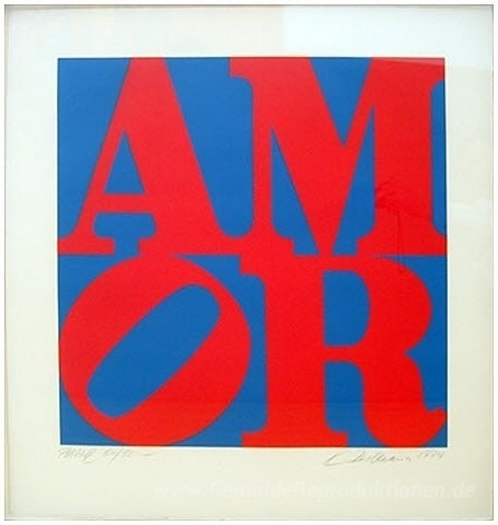 Wir bieten Ihnen eine handgefertigte Reproduktion auf Leinwand des berühmten Kunstwerks 'Amor' von Robert Indiana, aus dem Reproduktionsmuseum.