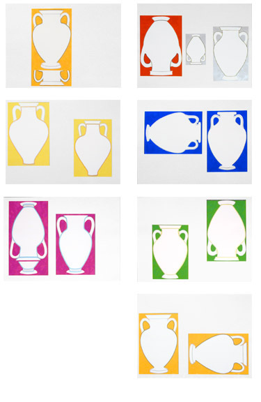 Wir bieten Ihnen eine handgefertigte Reproduktion auf Leinwand des berühmten Kunstwerks 'Amphora Frieze' von Jo Baer, aus dem Reproduktionsmuseum.