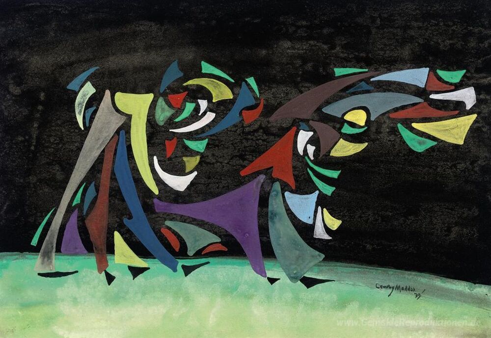 Conroy Maddox ist bekannt für seine avantgardistischen Ansätze, die Elemente des Surrealismus und der abstrakten Kunst vereinen. Seine künstlerischen Techniken, wie die gekonnte Anwendung von Farben und Texturen, schaffen eine dynamische und fesselnde Wirkung. Das Bild Anarchische Energie versprüht eine kraftvolle Vitalität und verleiht jedem Raum einen Hauch von uninhibitedem Ausdruck. Lassen Sie sich von der Energie und Tiefe des Gemäldes inspirieren und verwandeln Sie Ihr Zuhause in eine Oase der Kunst.