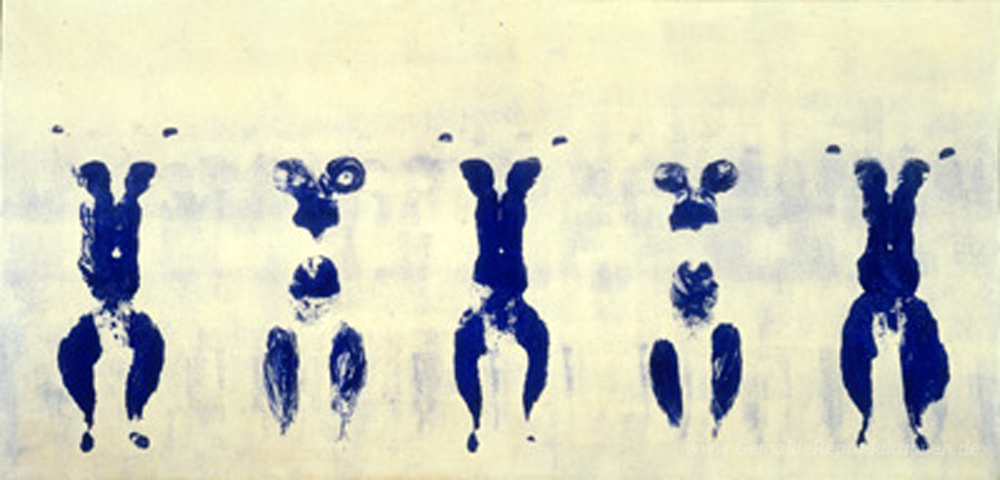 Wir bieten Ihnen eine handgefertigte Reproduktion auf Leinwand des berühmten Kunstwerks 'Anthropometrien der Blauen Periode' von Yves Klein, aus dem Reproduktionsmuseum.