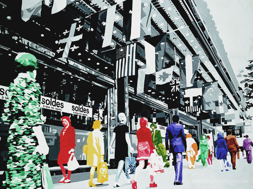 Wir bieten Ihnen eine handgefertigte Reproduktion auf Leinwand des berühmten Kunstwerks 'Au printemps' von Gerard Fromanger, aus dem Reproduktionsmuseum.