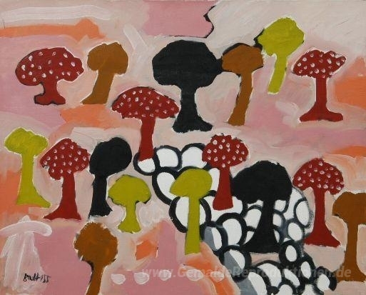 Wir bieten Ihnen eine handgefertigte Reproduktion auf Leinwand des berühmten Kunstwerks 'Bäume' von Walter Battiss, aus dem Reproduktionsmuseum.