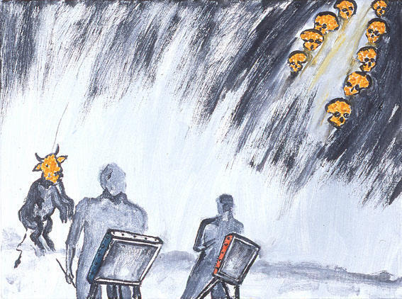 Wir bieten Ihnen eine handgefertigte Reproduktion auf Leinwand des berühmten Kunstwerks 'Babilonie' von Enzo Cucchi, aus dem Reproduktionsmuseum.