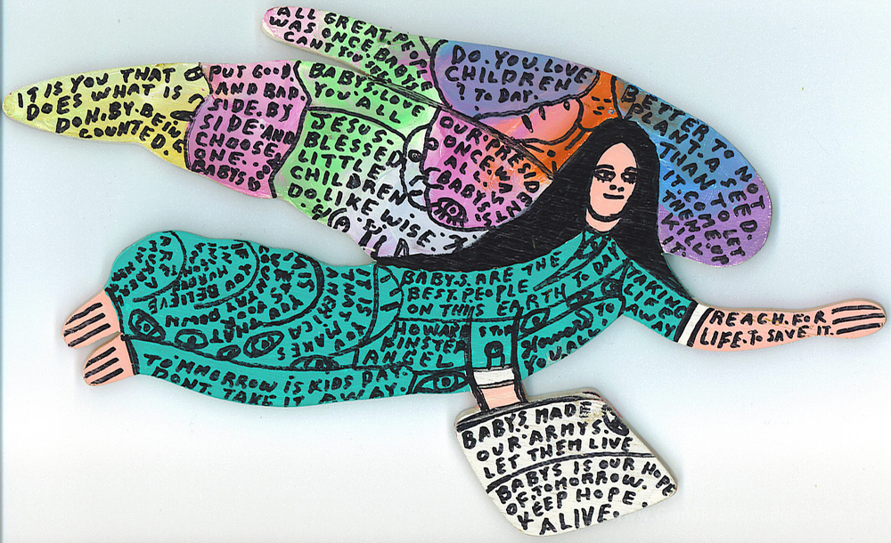 Wir bieten Ihnen eine handgefertigte Reproduktion auf Leinwand des berühmten Kunstwerks 'Baby-Engel' von Howard Finster, aus dem Reproduktionsmuseum.