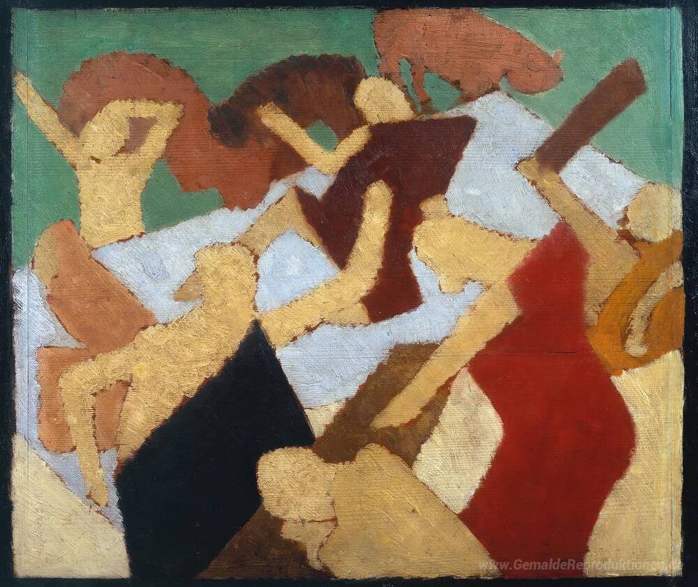 Wir bieten Ihnen eine handgefertigte Reproduktion auf Leinwand des berühmten Kunstwerks 'Badeszene' von David Bomberg, aus dem Reproduktionsmuseum.