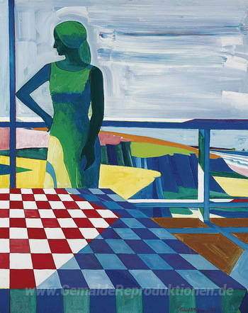 Wir bieten Ihnen eine handgefertigte Reproduktion auf Leinwand des berühmten Kunstwerks 'Balkon Bild' von Roland Petersen, aus dem Reproduktionsmuseum.