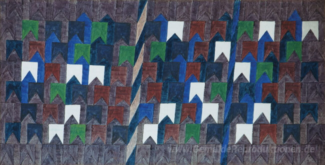 Wir bieten Ihnen eine handgefertigte Reproduktion auf Leinwand des berühmten Kunstwerks 'Bandeirinhas' von Alfredo Volpi, aus dem Reproduktionsmuseum.
