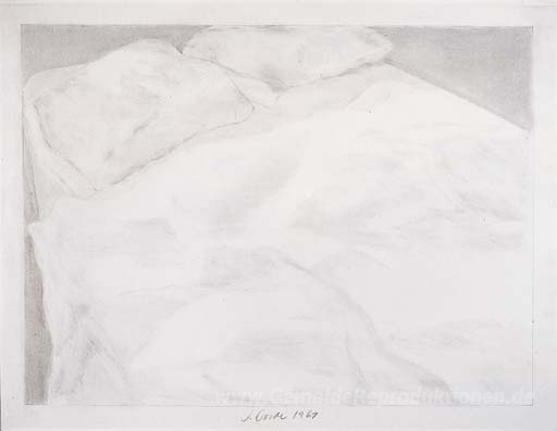 Wir bieten Ihnen eine handgefertigte Reproduktion auf Leinwand des berühmten Kunstwerks 'Bett' von Joe Goode, aus dem Reproduktionsmuseum.