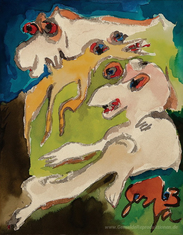 Wir bieten Ihnen eine handgefertigte Reproduktion auf Leinwand des berühmten Kunstwerks 'Bichos' von Ivan Serpa, aus dem Reproduktionsmuseum.