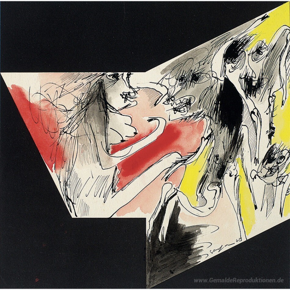 Wir bieten Ihnen eine handgefertigte Reproduktion auf Leinwand des berühmten Kunstwerks 'Bichos' von Ivan Serpa, aus dem Reproduktionsmuseum.
