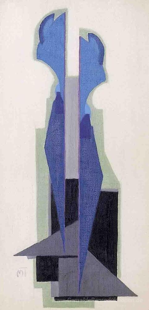 Wir bieten Ihnen eine handgefertigte Reproduktion auf Leinwand des berühmten Kunstwerks 'Blau Vertikale' von Janos Mattis-Teutsch, aus dem Reproduktionsmuseum.