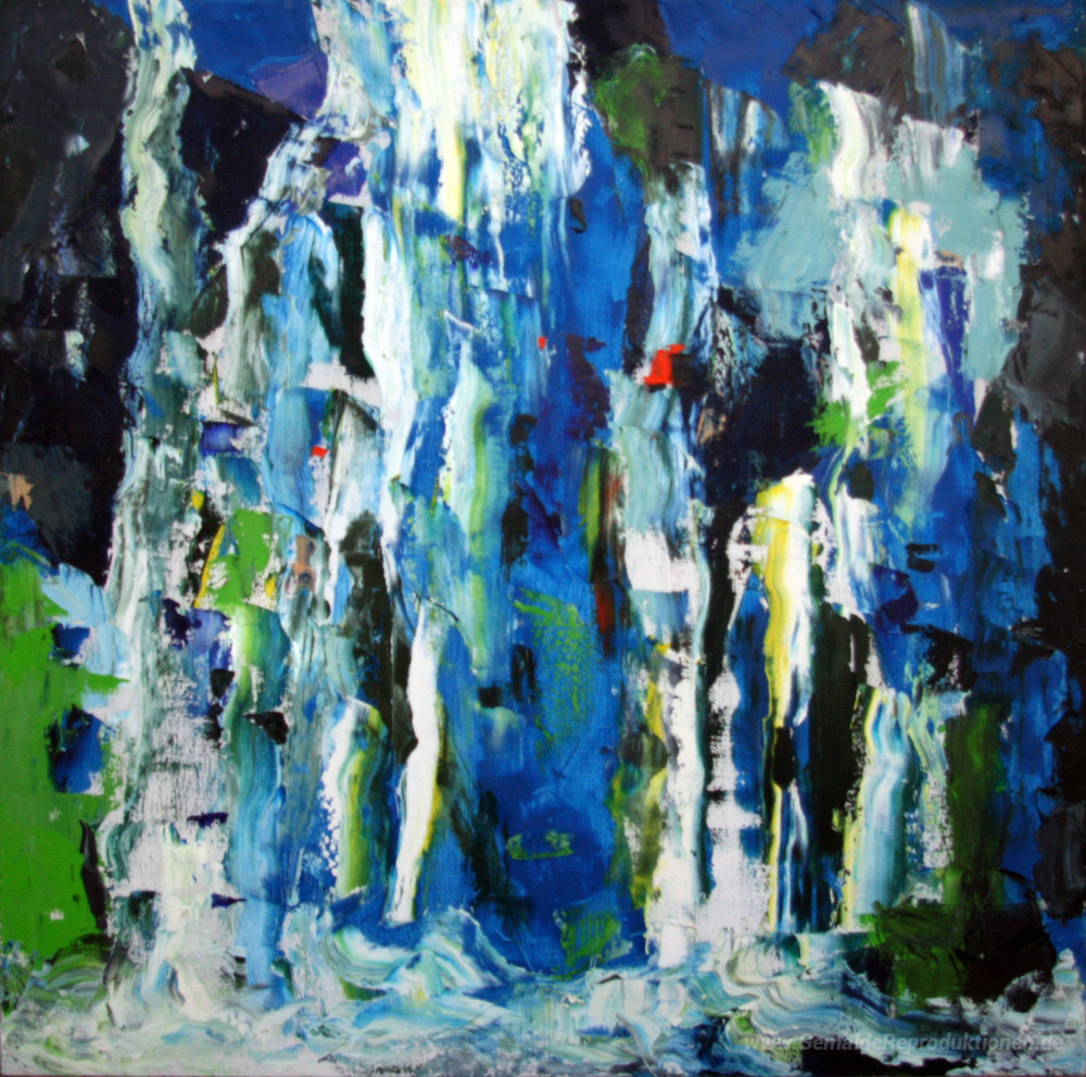 Wir bieten Ihnen eine handgefertigte Reproduktion auf Leinwand des berühmten Kunstwerks 'Blauer Wasserfall' von Romul Nutiu, aus dem Reproduktionsmuseum.