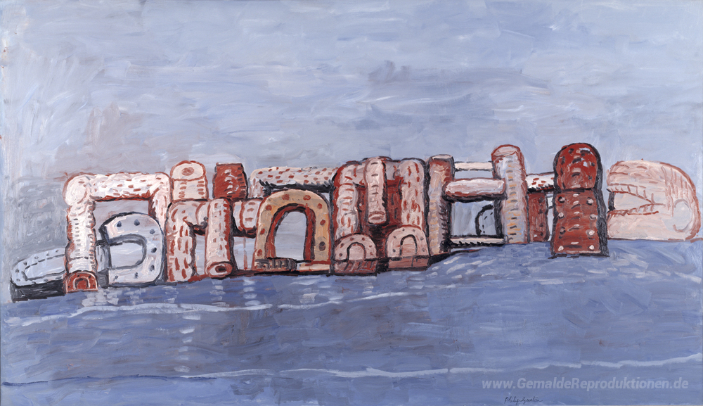 Wir bieten Ihnen eine handgefertigte Reproduktion auf Leinwand des berühmten Kunstwerks 'Blaues Wasser' von Philip Guston, aus dem Reproduktionsmuseum.