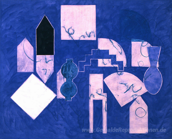 Wir bieten Ihnen eine handgefertigte Reproduktion auf Leinwand des berühmten Kunstwerks 'Blu Lascaux' von Denise Green, aus dem Reproduktionsmuseum.