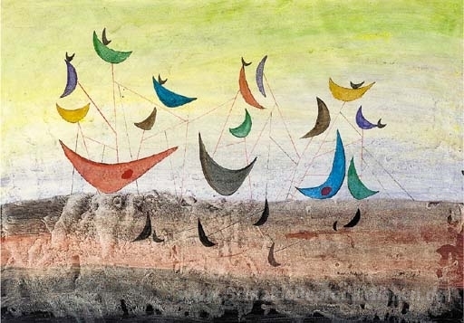 Wir bieten Ihnen eine handgefertigte Reproduktion auf Leinwand des berühmten Kunstwerks 'Boomerang' von Conroy Maddox, aus dem Reproduktionsmuseum.