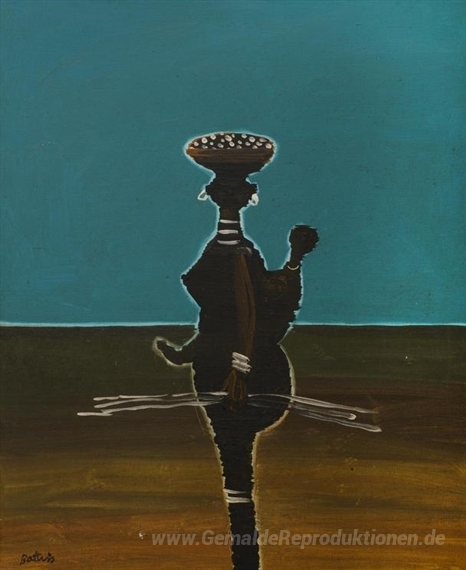 Wir bieten Ihnen eine handgefertigte Reproduktion auf Leinwand des berühmten Kunstwerks 'Bushwoman' von Walter Battiss, aus dem Reproduktionsmuseum.
