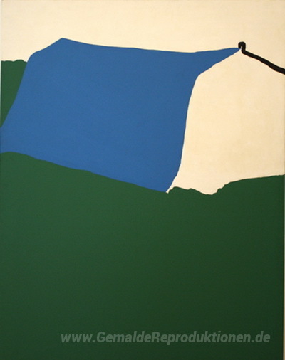 Wir bieten Ihnen eine handgefertigte Reproduktion auf Leinwand des berühmten Kunstwerks 'Camping II' von Raoul De Keyser, aus dem Reproduktionsmuseum.