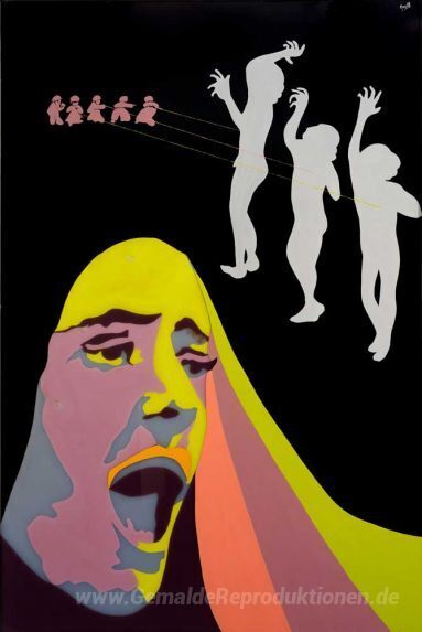 Wir bieten Ihnen eine handgefertigte Reproduktion auf Leinwand des berühmten Kunstwerks 'Campus' von Evelyne Axell, aus dem Reproduktionsmuseum.