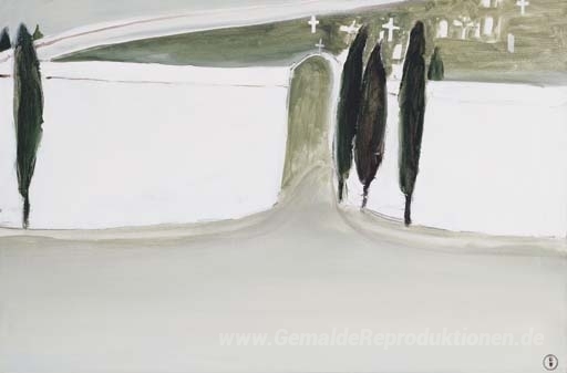 Wir bieten Ihnen eine handgefertigte Reproduktion auf Leinwand des berühmten Kunstwerks 'Cemetary in Sizilien' von Brett Whiteley, aus dem Reproduktionsmuseum.