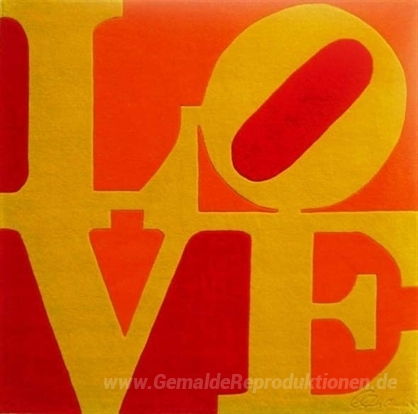 Wir bieten Ihnen eine handgefertigte Reproduktion auf Leinwand des berühmten Kunstwerks 'Chosen Liebe' von Robert Indiana, aus dem Reproduktionsmuseum.