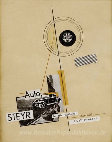 Wir bieten Ihnen eine handgefertigte Reproduktion auf Leinwand des berühmten Kunstwerks 'Collage II' von Lajos Kassak, aus dem Reproduktionsmuseum.