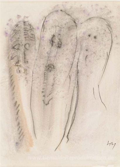 Wir bieten Ihnen eine handgefertigte Reproduktion auf Leinwand des berühmten Kunstwerks 'Composition aux trois têtes' von Henri Michaux, aus dem Reproduktionsmuseum.