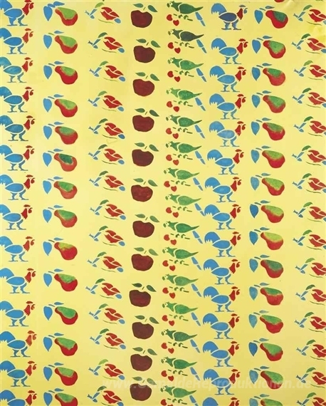 Wir bieten Ihnen eine handgefertigte Reproduktion auf Leinwand des berühmten Kunstwerks 'Coq et pommes' von Martial Raysse, aus dem Reproduktionsmuseum.