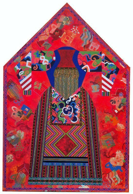 Wir bieten Ihnen eine handgefertigte Reproduktion auf Leinwand des berühmten Kunstwerks 'Der Poet' von Miriam Schapiro, aus dem Reproduktionsmuseum.