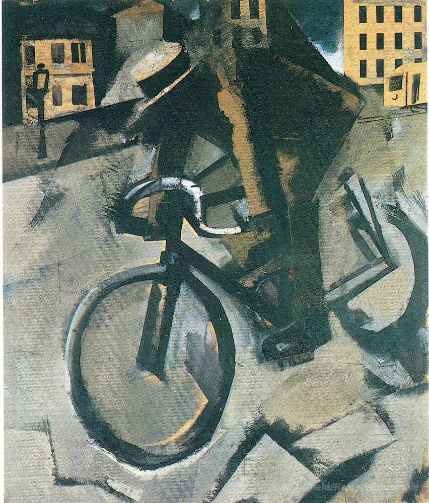 Wir bieten Ihnen eine handgefertigte Reproduktion auf Leinwand des berühmten Kunstwerks 'Der Radfahrer' von Mario Sironi, aus dem Reproduktionsmuseum.