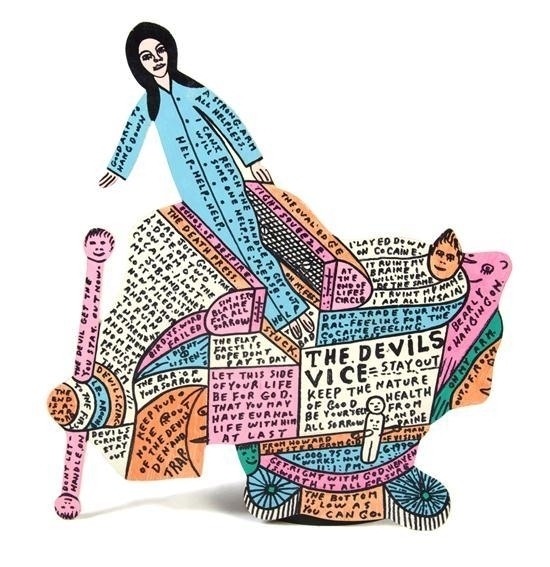 Wir bieten Ihnen eine handgefertigte Reproduktion auf Leinwand des berühmten Kunstwerks 'Des Teufels Vize' von Howard Finster, aus dem Reproduktionsmuseum.