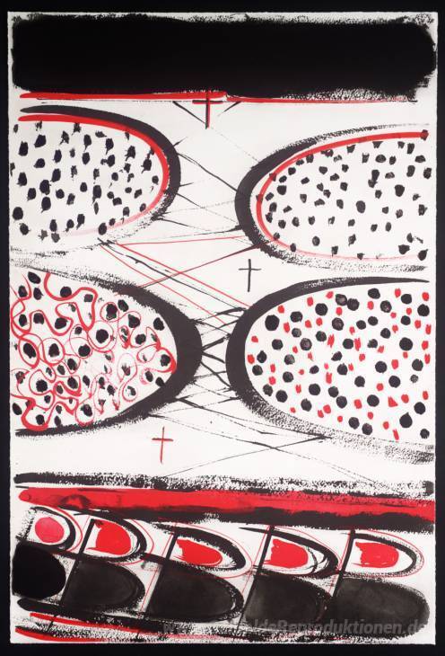 Wir bieten Ihnen eine handgefertigte Reproduktion auf Leinwand des berühmten Kunstwerks 'Die alte Jungfer in der Messe' von Terry Frost, aus dem Reproduktionsmuseum.