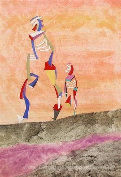 Wir bieten Ihnen eine handgefertigte Reproduktion auf Leinwand des berühmten Kunstwerks 'Die Lockvögel' von Conroy Maddox, aus dem Reproduktionsmuseum.